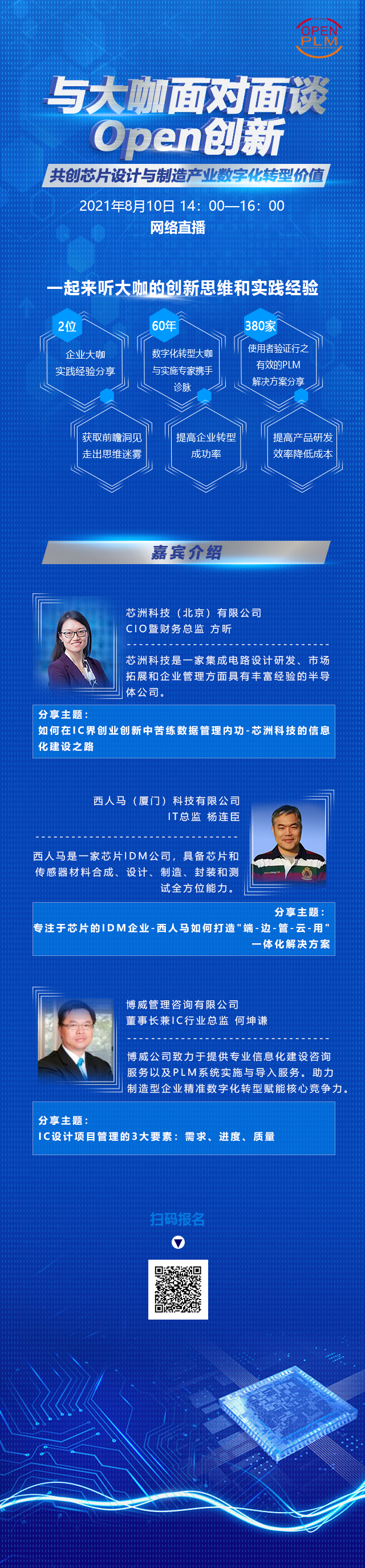 操作系統、人工智慧、感測器等關鍵領域的快速發展,IC晶片產品之研發設計、生產製造、封裝測試、IP智財管理、跨界整合的數位化轉型升級迫在眉睫,然而如何能不在數位化轉型過程中迷航,並實現最終提高效率、降低成本、