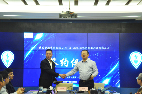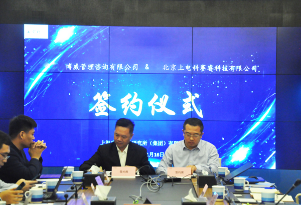 “博威管理諮詢總經理何坤謙先生(圖左)與上電科北京分院院長盧琛鈺先生(圖右)正在簽署戰略合作協議。”