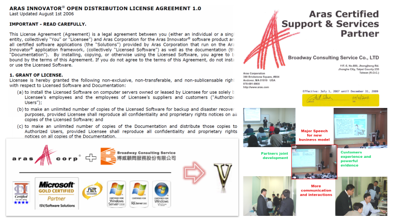 可以說是高瞻遠矚,也可以說是正確的賭注,博威團隊從2007年就開始推廣Open PLM平臺,其實我們當時也很清楚為什麼Aras公司必須將軟體免費,不外乎就是中國所說的大破大立,或者歐美企業經常說的Disruptive innovation(破壞性創新),迫於傳統PLM大廠如Siemens(當時仍為UGS公司)、PTC公司、Oracle(當時為Agile公司)、以及達梭公司(當時由IBM負責推廣),這對於當時只有不到50人的公司可以說是一點機會也沒有,當時跟Aras總裁Peter Schroer就說了一句We got to do something different(Be unique),基於認同博威團隊也全面轉換推廣Open PLM平臺,因為我們相信開放授權肯定是未來趨勢,也是對於以顧問與技術為核心的團隊最好的選擇。