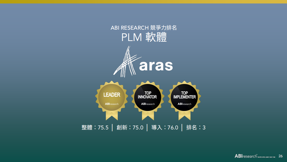 ABI Research產品生命週期管理創新與導入PLM軟體廠商整體競爭力排名