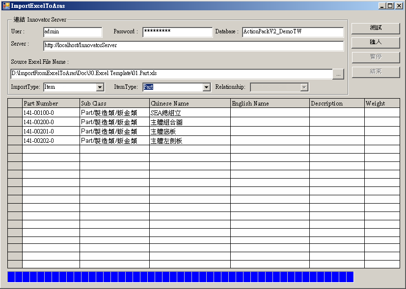 可以匯入在Innovator系統中屬性為Relationship的物件,例如BOM資料。