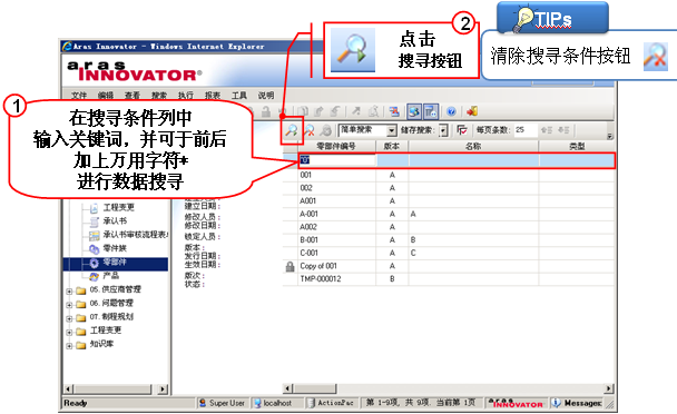 在搜尋條件列中輸入關鍵字,並可於前後加上萬用字符