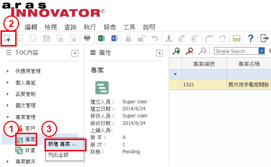 1.選擇專案計畫管理,展開清單,選擇專案。