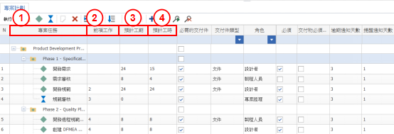 1.選擇專案計畫頁簽,切換至專案計畫頁面,編輯專案任務。
