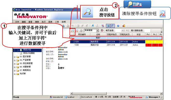 在搜尋條件列中輸入關鍵字,並可於前後加上萬用字符