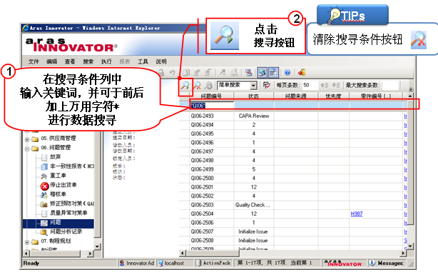 1. 在搜尋條件列中輸入關鍵詞,並可於前後加上萬用字符*