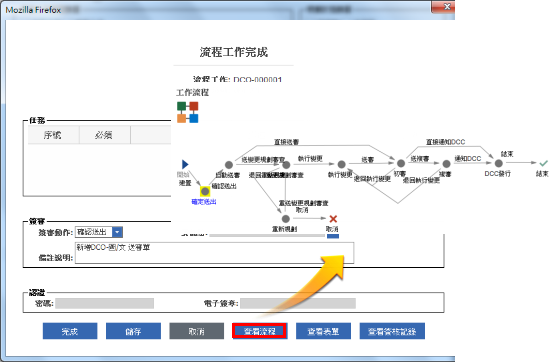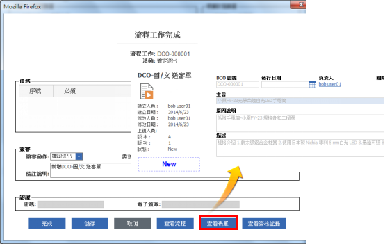 補充說明:圖文審核流程結束時,系統會自動給予圖文審核表單的生命週期狀態為Released,所附加簽審的文檔和工程圖會一併被發行。
