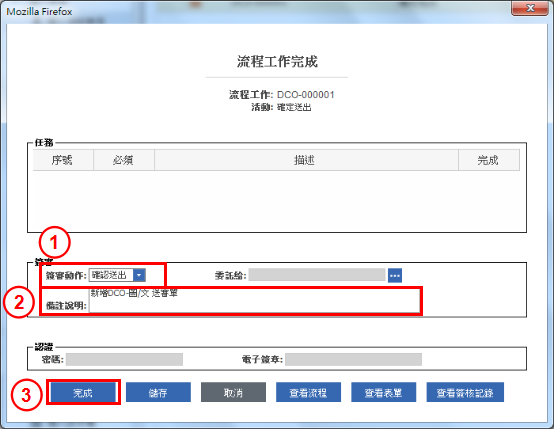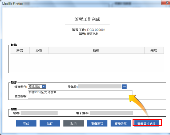 1.在確定送出關卡中,簽審動作選擇為“確認送出”。