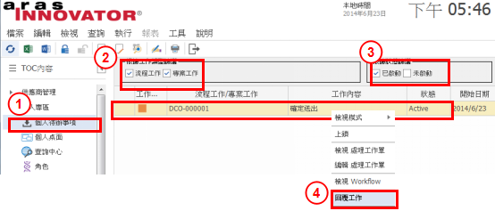 4.在欲簽審的工作按滑鼠右鍵展開功能列,選擇"進行簽核表",打開簽審窗口。