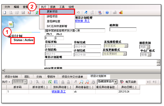 2.選擇執行,展開功能列,點選“更新專案”,更新專案進度。