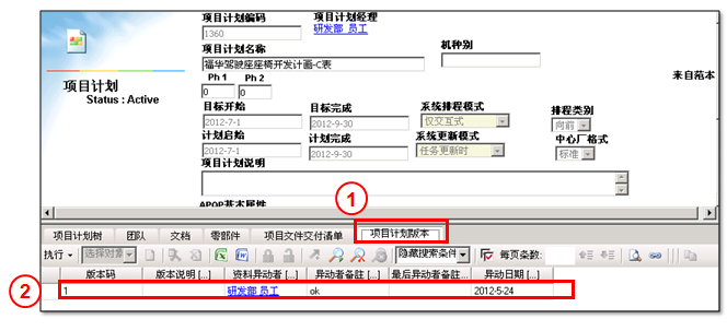 1.選擇“專案計畫版本”頁簽,打開專案版本記錄查看頁面。