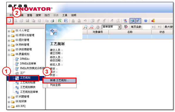 1.選擇06.品質規劃,展開品質規劃列表,選擇工藝規劃。