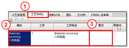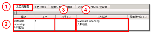 2.模組、工序、工序特徵字段內容會從工藝流程圖帶入PFMEA中。