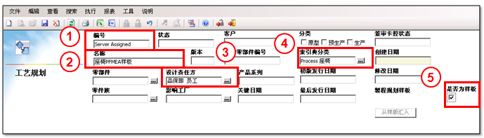 1.新建工藝規劃編號顯示“Sever Assigned”,保存後系統會自動分配工藝規劃編號。