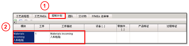 2.模組、工序、工序描述字段內容會從工藝流程圖帶入控制計畫中。