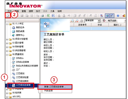 1.選擇06.品質規劃,展開品質規劃列表,選擇工藝規劃送審單。