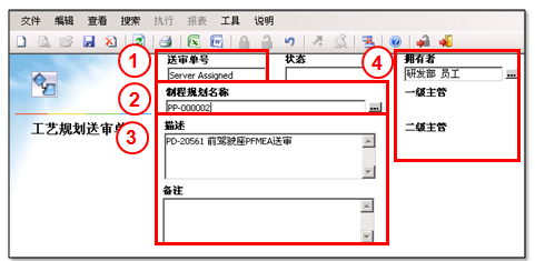 1.新建工藝規劃送審單的送審單號顯示“Sever Assigned”,保存後系統會自動分配送審單號。