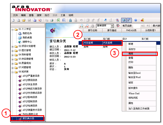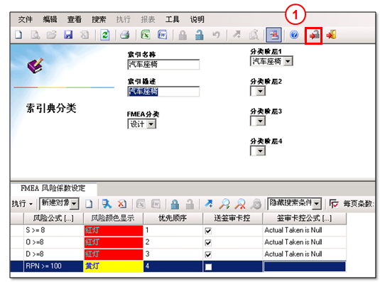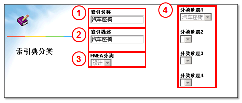 1.若欲維護現有的FMEA索引典分類,選擇“索引典分類”,展開列表。